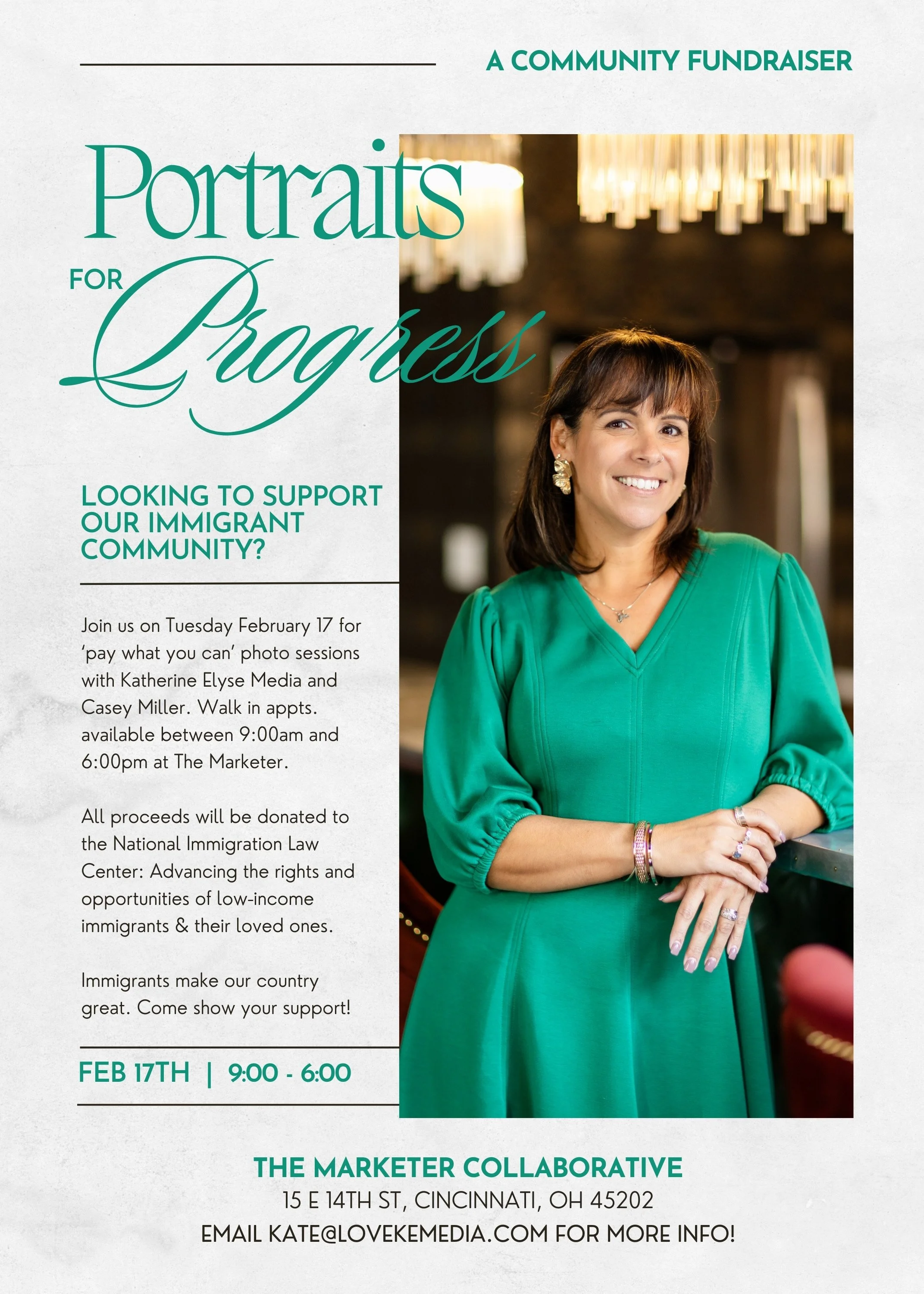 On a gray Cincinnati winter morning, when the news cycle has felt like an endless loop of horrible news, one local photographer decided that scrolling and reposting wasn’t enough. She has, as she puts it, “one skill”: she takes pictures. So instead of sitting with helplessness, Katheine Weinbender is turning that skill into action with Portraits for Progress, a one-day pay- what-you-can portrait event that offers people more than just a new headshot, but a chance to feel seen, support immigrants and gather in community at a moment when isolation and outrage can feel like the default.